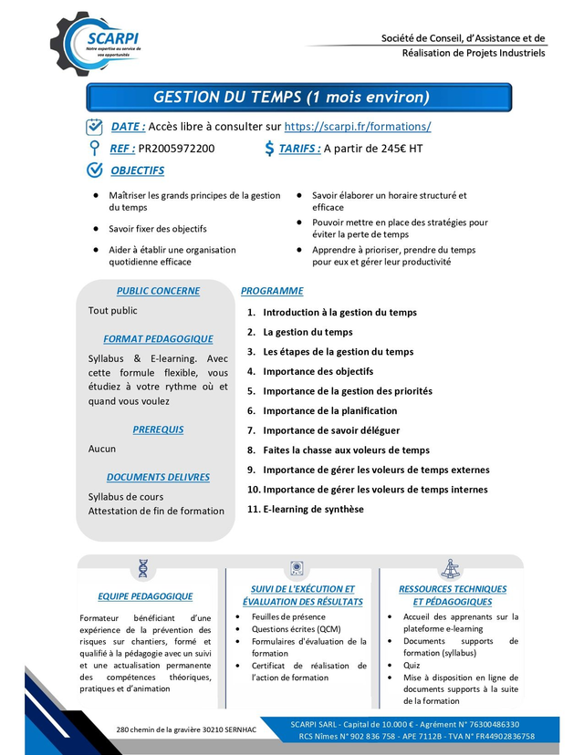 Cette formation à distance permet de s'organiser et mieux gérer le temps pour réaliser ses activités.