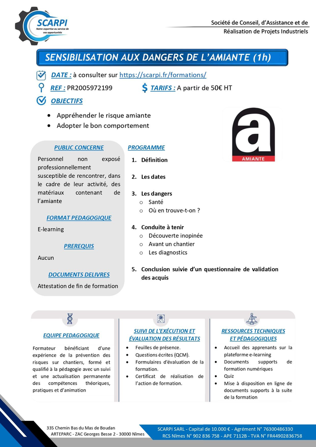 PROFIL DES APPRENANTS : Personnel non exposé professionnellement susceptible de rencontrer, dans le cadre de leur activité professionnelle, des matériaux contenant de l’amiante (Prérequis : Aucun)